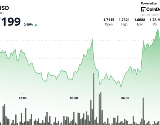 APT$1.7274 posted rose in the past 24 hours, advancing 1.3% to $1.73. The token maintained tight correlation with broader crypto markets throughout the