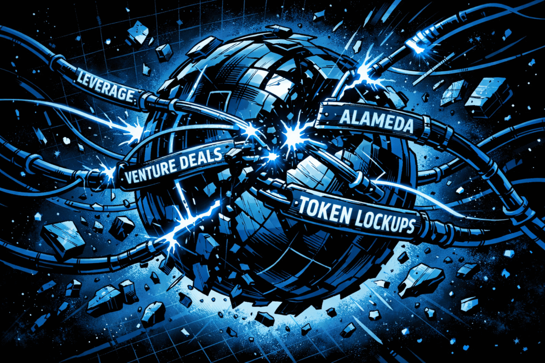 Illiquid positions could not be converted to cash fast enough. An 8% stake in Anthropic could not be sold in an afternoon. Offloading 58 million Solana tokens would have crushed the market price. Once a bank run started, balance sheet math failed.